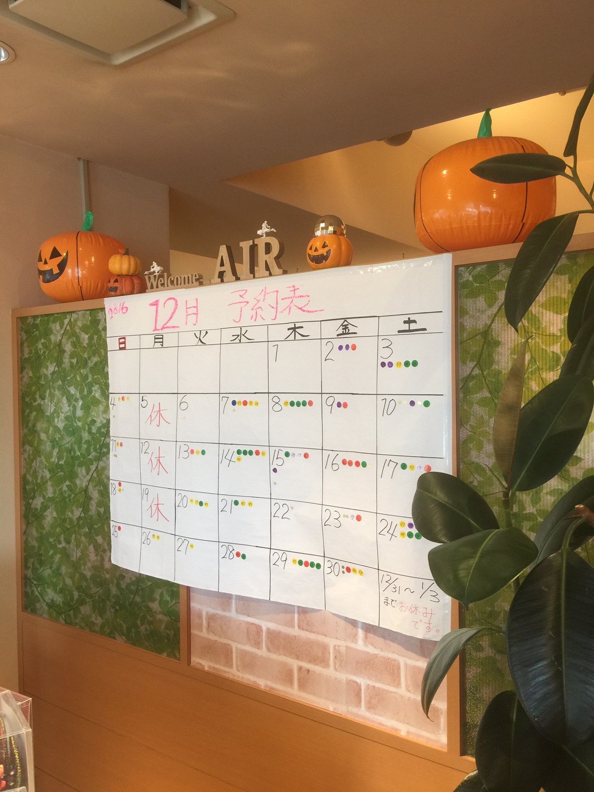 AIRでは年末の12月の予約取りを開始しています。