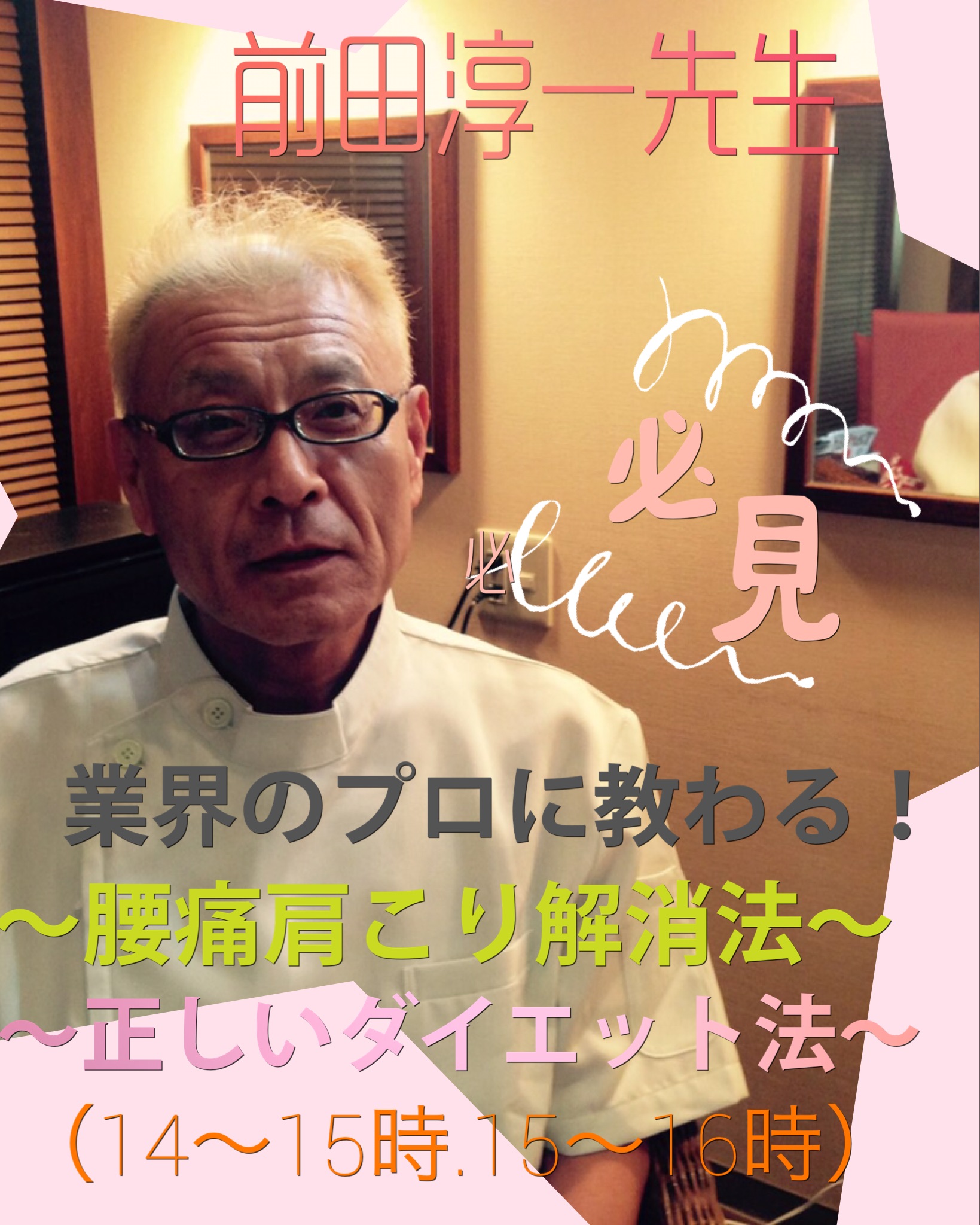 15時~16時  整体師前田さんによる、健康にやせるダイエット講座
